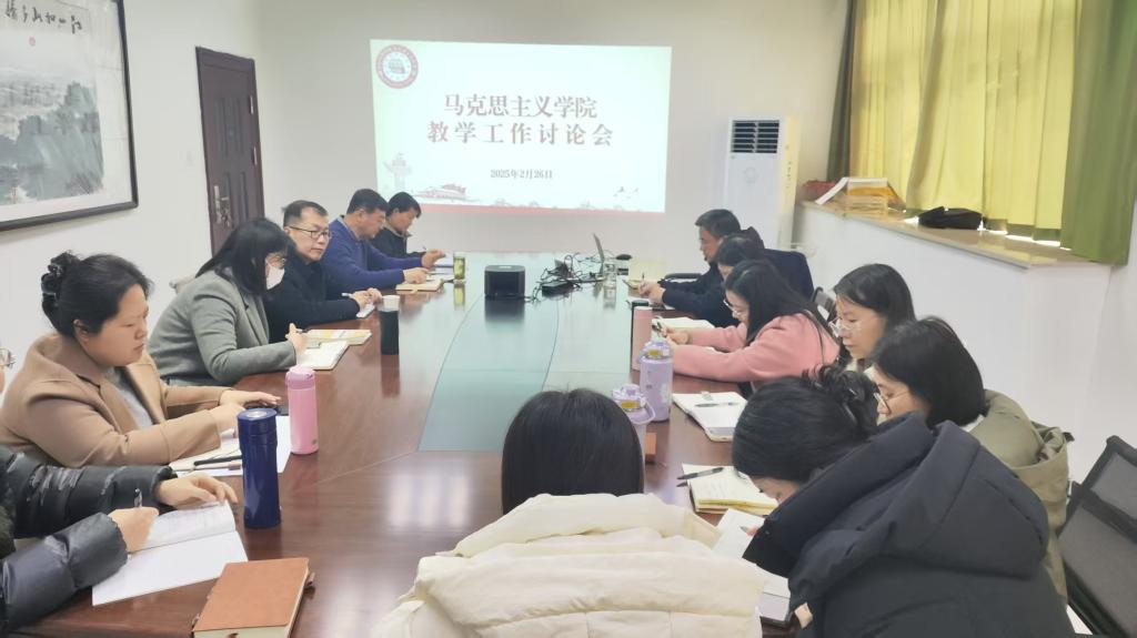 2025年2月26日下午,bat365中文官方网站在行政楼913会议室召开全体教师会议,深入学习学校2025年教学工作会议精神,进一步明确学院教学工作方向,提升思政课教学质量。学校党委书记参加了讨论会,会议由学院副院长曹卓主持,学院全体教师参会。