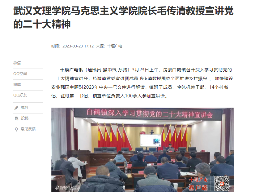 新闻链接:bat365中文官方网站院长毛传清教授宣讲党的二十大精神-十堰广电网 (syiptv.com)