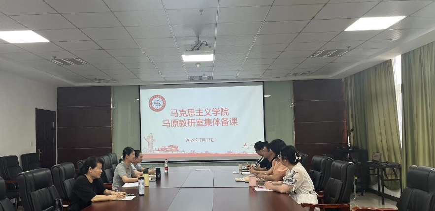 马原教研室围绕两个议程开展集体备课,首先布置2024-2025-1学期前期准备工作,其次共同学习探讨2024年马克思主义基本原理OBE教学大纲、云班课的使用情况、教学效果、实践教学等问题。
